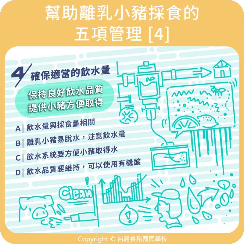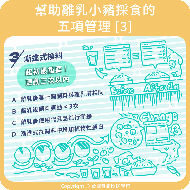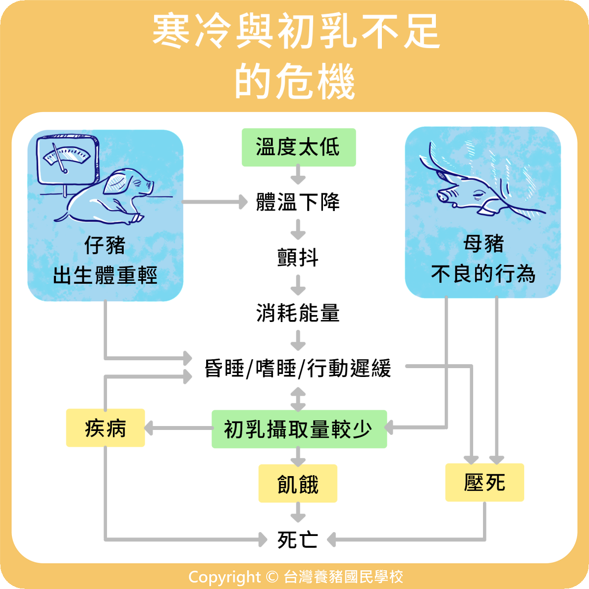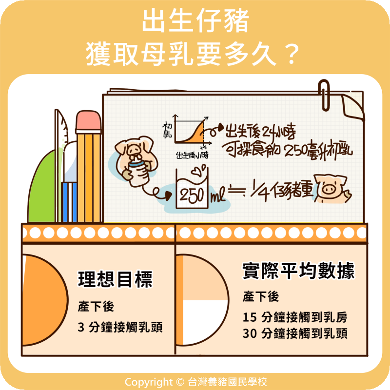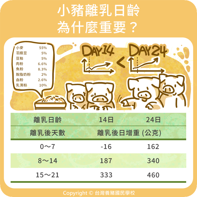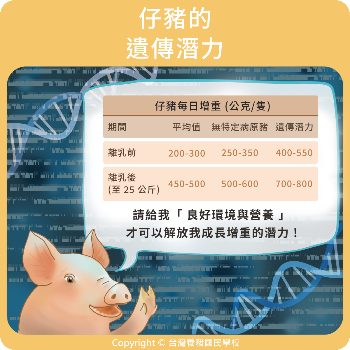 隨著時間過去,母豬乳汁中的抗體漸漸降低,而仔豬的免疫系統也慢慢地建立起來了。在這之間,大約於甫離乳時,仔豬的抵抗力會來到最低點,此時容易受到微生物感染,因此需要特別注意離乳仔豬的健康狀況。