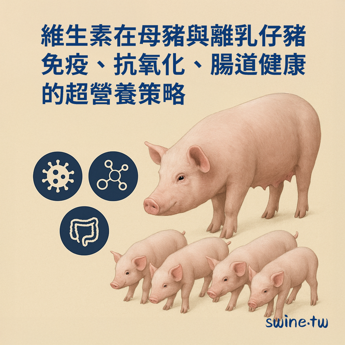 相關連結今天要來跟大家談談,來深入了解維他命跟豬隻免疫系統的研究報告。現代養豬業的挑戰真不少,像是熱緊迫、高密度飼養的壓力、還有一些特殊階段如懷孕、泌乳、離乳,這些因素都會影響豬的健康。而在營養中,維生素(維他命)對於強化豬的免疫系統,扮演了很關鍵的角色。想要更進一步了解,歡迎收聽本集Podcast!