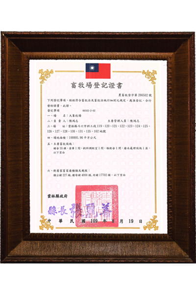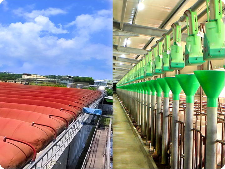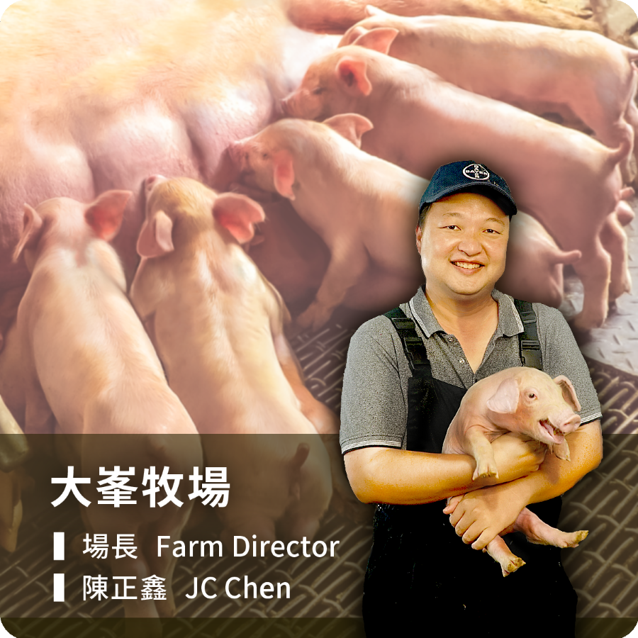 大峯牧場屬於一貫場,目前畜舍約有五十餘棟。畜舍包含有:公豬舍、母豬舍、分娩舍、保育舍、肉豬舍。於畜舍屋頂共設置有兩期太陽能電板,分別為 1.99 與 1.98 Mega Watt。於牧場東北方設置有三段式廢水處理以及沼氣發電機等設施。